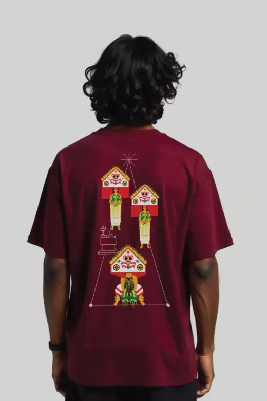 Original price was: ₹1,200.00.₹699.00Current price is: ₹699.00.Maroon Oversized T-Shirt with Pakkanar Thullal Design Print